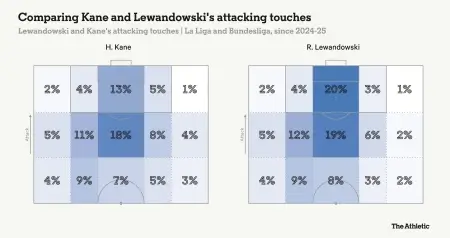 შედარება ლევანდოვსკისთან - კეინი დროის 13%-ს ატარებს ცხრიანის პოზიციაზე, 18%-ს ათიანის პოზიციაზე. ლევანდოვსკის მაჩვენებელი 20/19-ზეა.